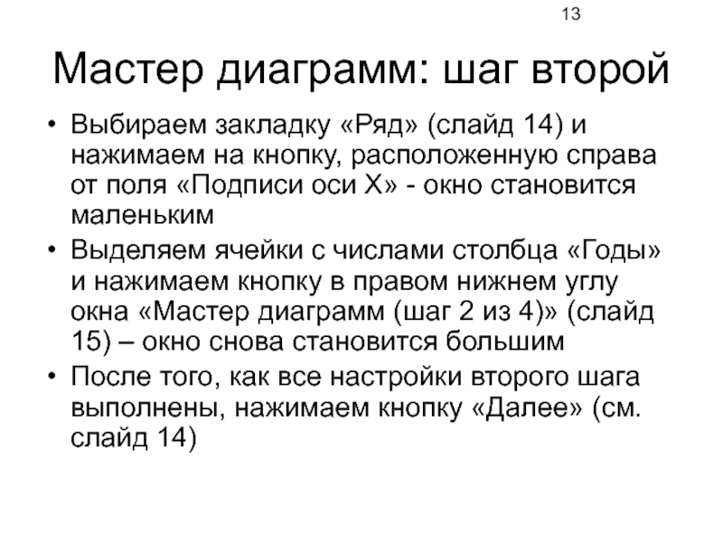 Слайд 13Мастер диаграмм: шаг второй