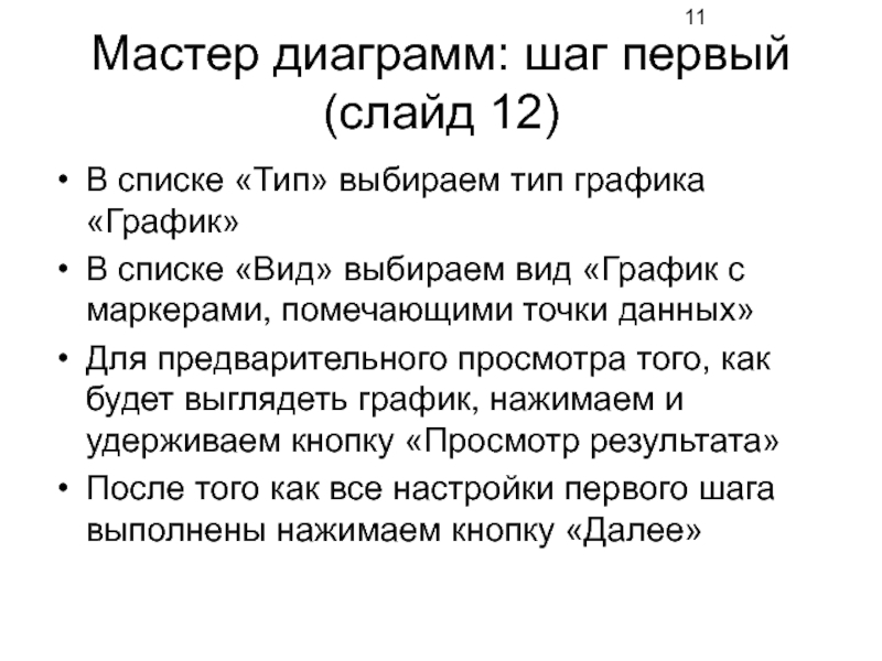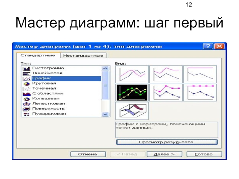 Слайд 11Мастер диаграмм: шаг первый (слайд 12)