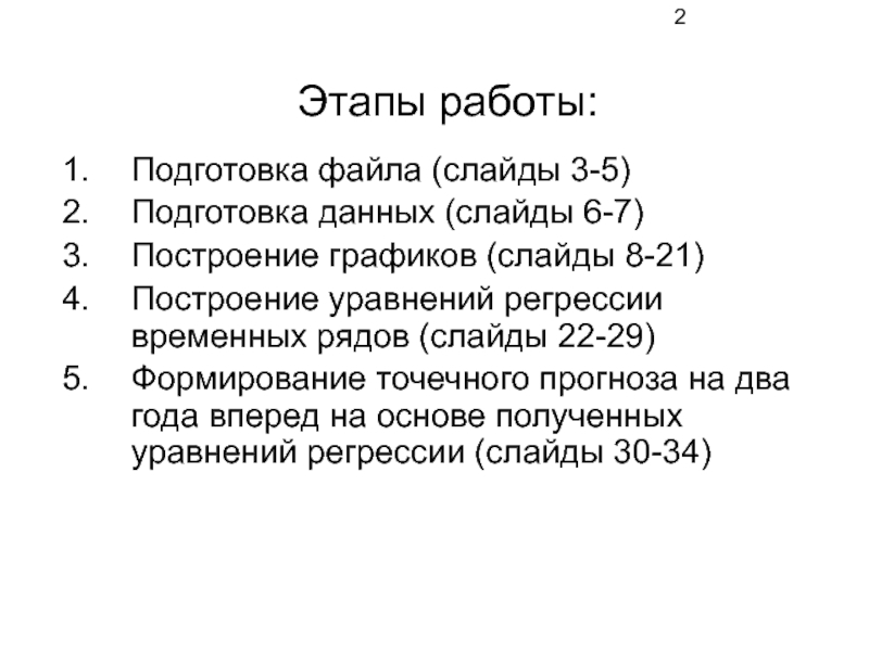 Формирование точечного прогноза на два года вперед на основе полученных уравнений регрессии (слайды 30-34)