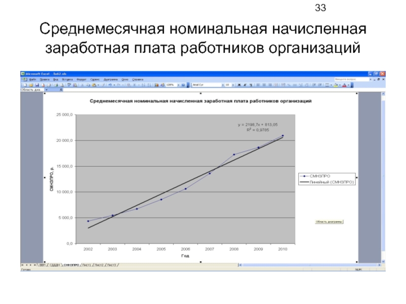 Слайд 33Среднемесячная номинальная начисленная заработная плата работников организаций