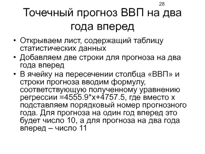 Слайд 28Точечный прогноз ВВП на два года вперед