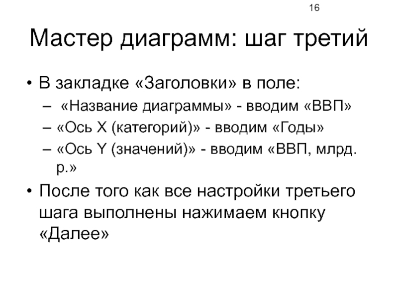 Слайд 16Мастер диаграмм: шаг третий
