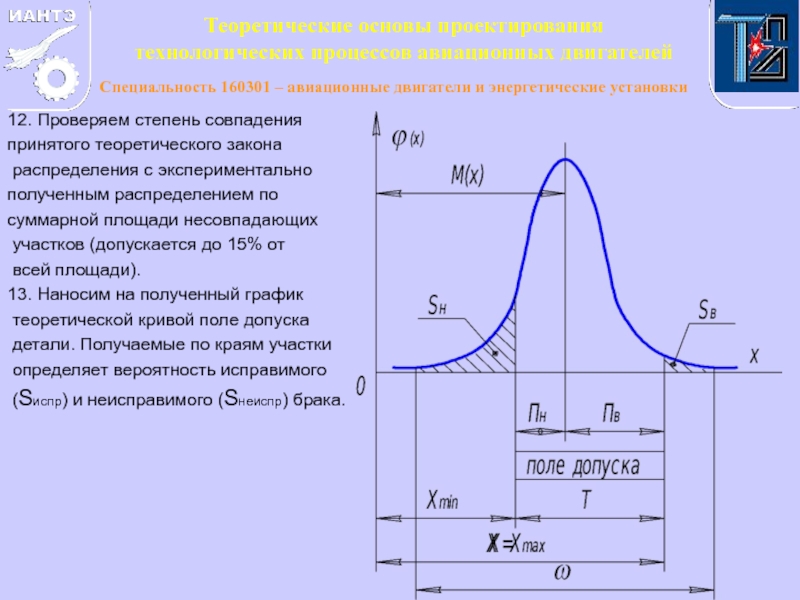 в мкм, по оси ординат – относительное количество деталей, действительные погрешности размеров которых находятся в данном интервале (рис.3).