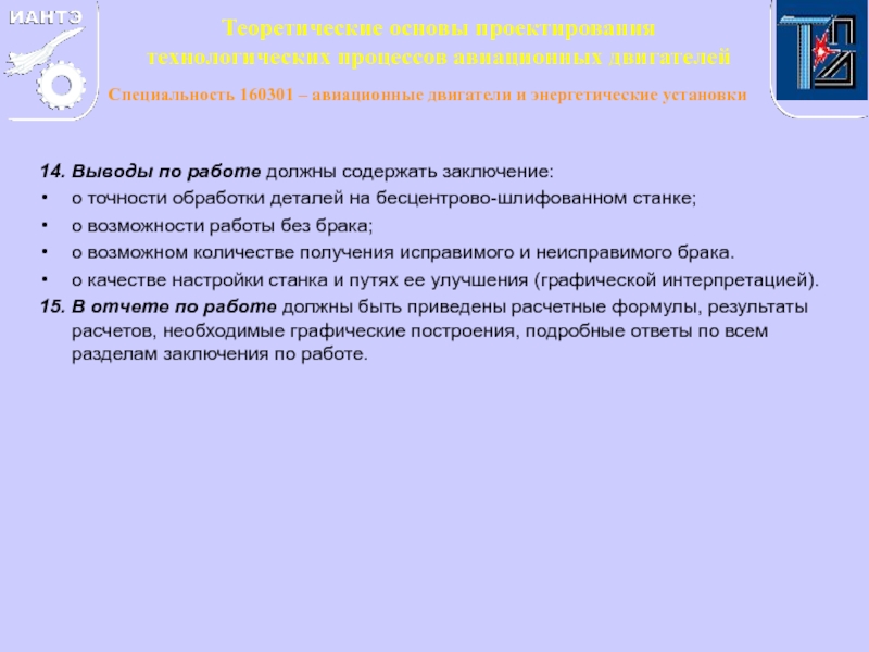 15. В отчете по работе должны быть приведены расчетные формулы, результаты расчетов, необходимые графические построения, подробные ответы по всем разделам заключения по работе.