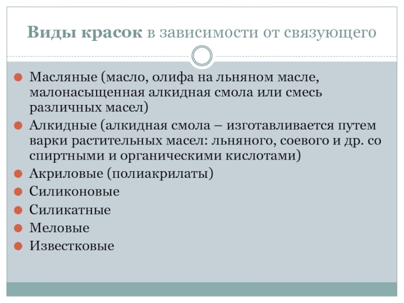Алкидные (алкидная смола – изготавливается путем варки растительных масел: льняного, соевого и др. со спиртными и органическими кислотами)
