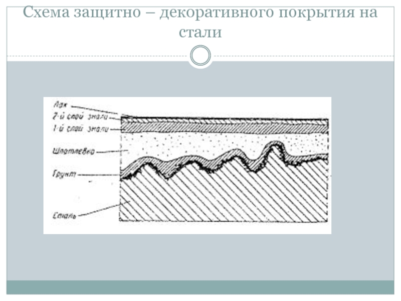 Слайд 4Схема защитно – декоративного покрытия на стали
