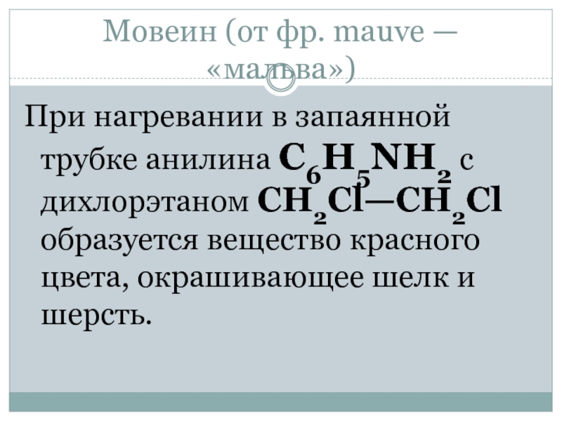 Слайд 17Мовеин (от фр. mauve — «мальва»)