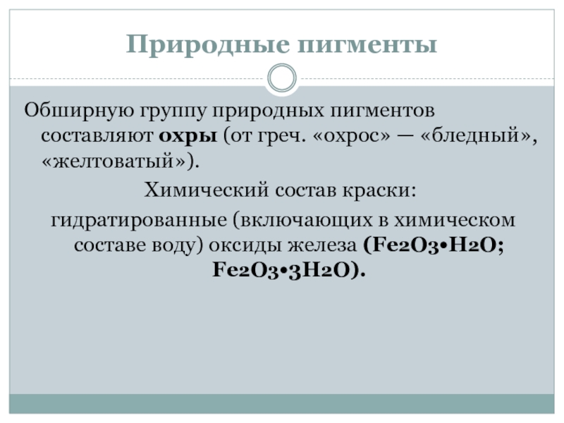 Обширную группу природных пигментов составляют охры (от греч. «охрос» —
