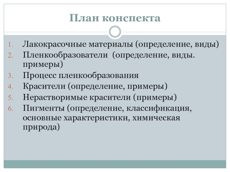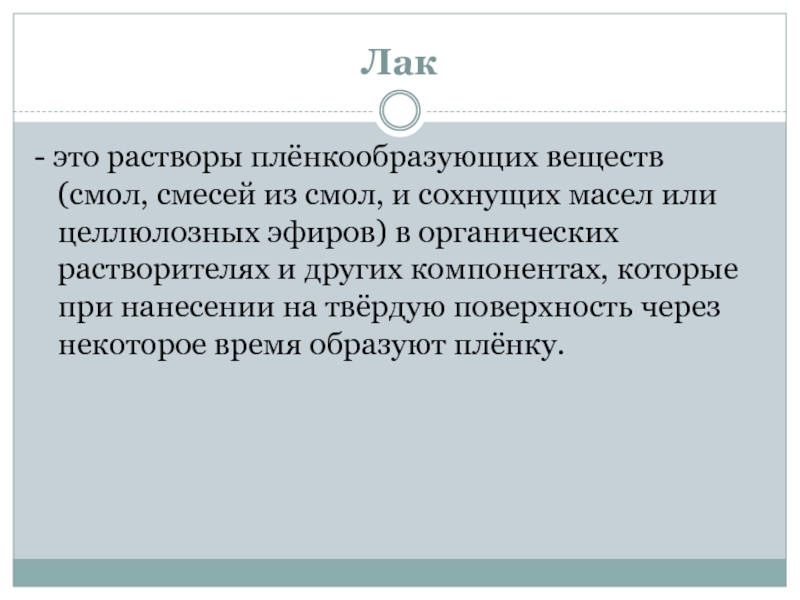 сохнущих масел или целлюлозных эфиров) в органических растворителях и других компонентах, которые при нанесении на твёрдую поверхность через некоторое время образуют плёнку.