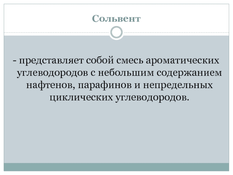 - представляет собой смесь ароматических углеводородов с небольшим содержанием нафтенов, парафинов