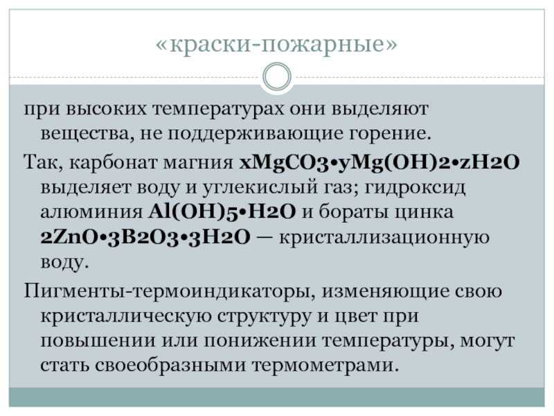 магния xMgCO3•yMg(OH)2•zH2O выделяет воду и углекислый газ; гидроксид алюминия Аl(ОН)5•Н2О и бораты цинка 2ZnO•3В2О3•3Н2О — кристаллизационную воду.
