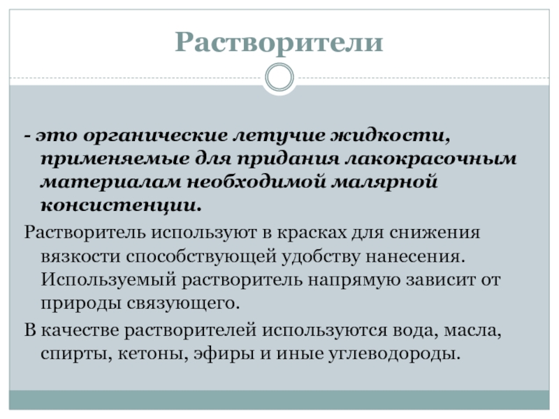 - это органические летучие жидкости, применяемые для придания лакокрасочным материалам необходимой