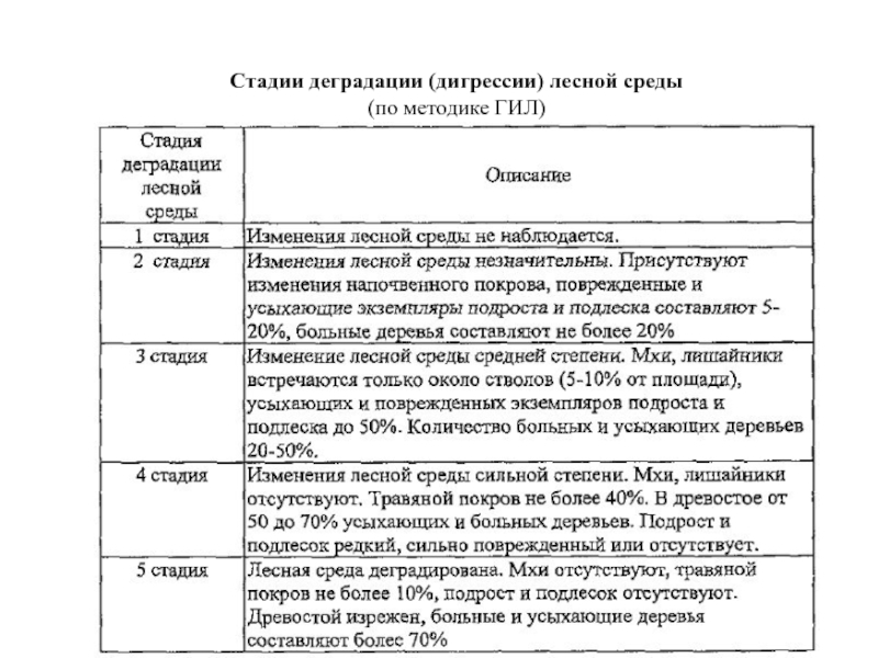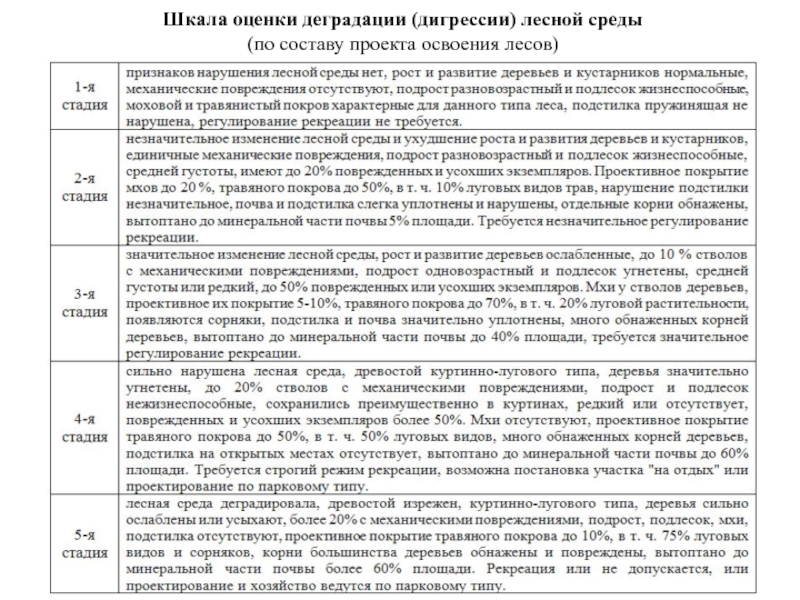 Слайд 6Шкала оценки деградации (дигрессии) лесной среды