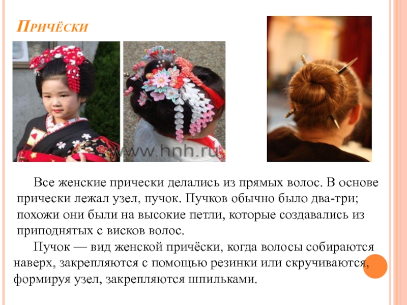 Пучок — вид женской причёски, когда волосы собираются наверх, закрепляются с помощью резинки или скручиваются, формируя узел, закрепляются шпильками.