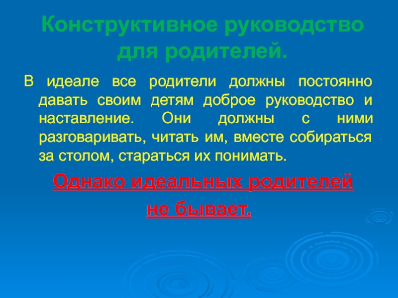 детям доброе руководство и наставление. Они должны с ними разговаривать, читать им, вместе собираться за столом, стараться их понимать.