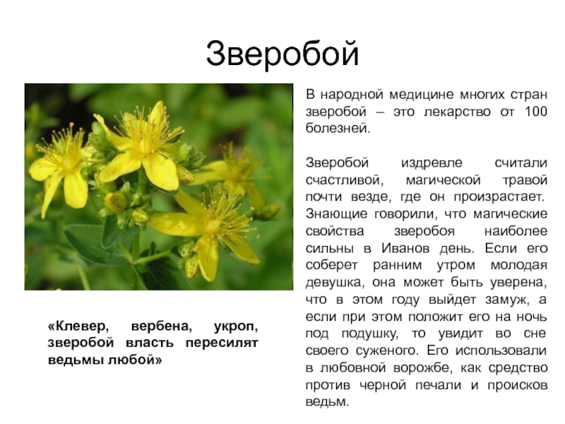 «Клевер, вербена, укроп, зверобой власть пересилят ведьмы любой»