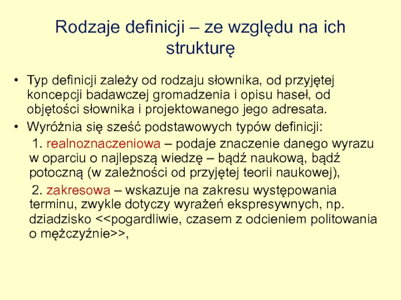 Слайд 10Rodzaje definicji – ze względu na ich strukturę