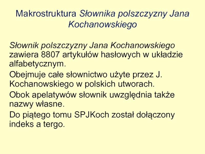 Слайд 63Makrostruktura Słownika polszczyzny Jana Kochanowskiego