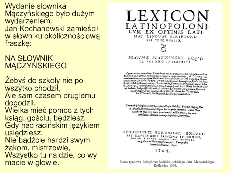 Слайд 78Wydanie słownika Mączyńskiego było dużym wydarzeniem.