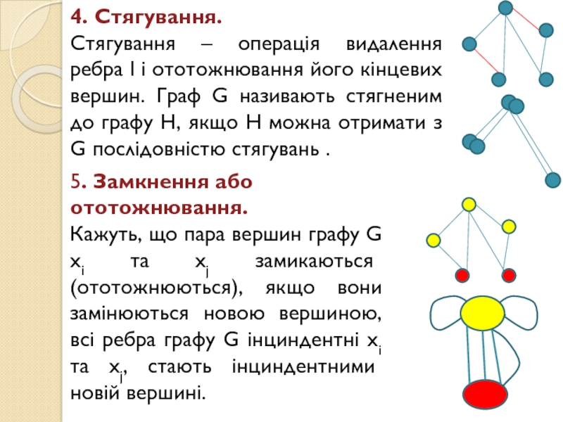 вершин. Граф G називають стягненим до графу Н, якщо Н можна отримати з G послідовністю стягувань .