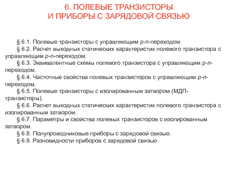 6. ПОЛЕВЫЕ ТРАНЗИСТОРЫ