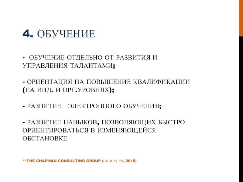 - ОБУЧЕНИЕ ОТДЕЛЬНО ОТ РАЗВИТИЯ И УПРАВЛЕНИЯ ТАЛАНТАМИ;