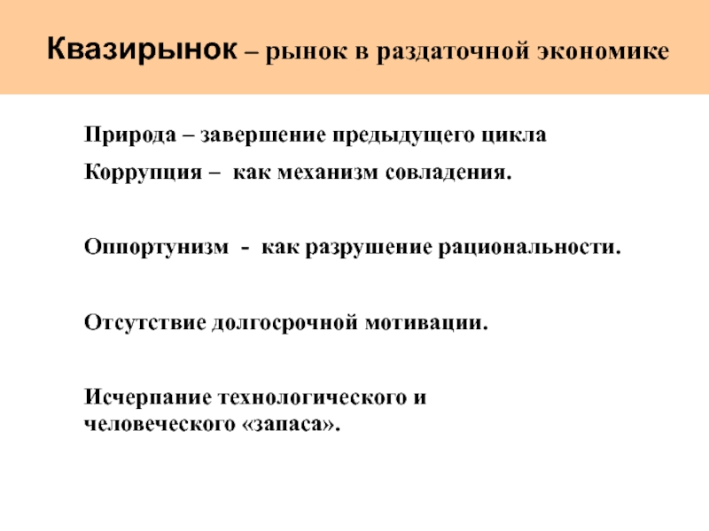 Слайд 23 Квазирынок – рынок в раздаточной экономике