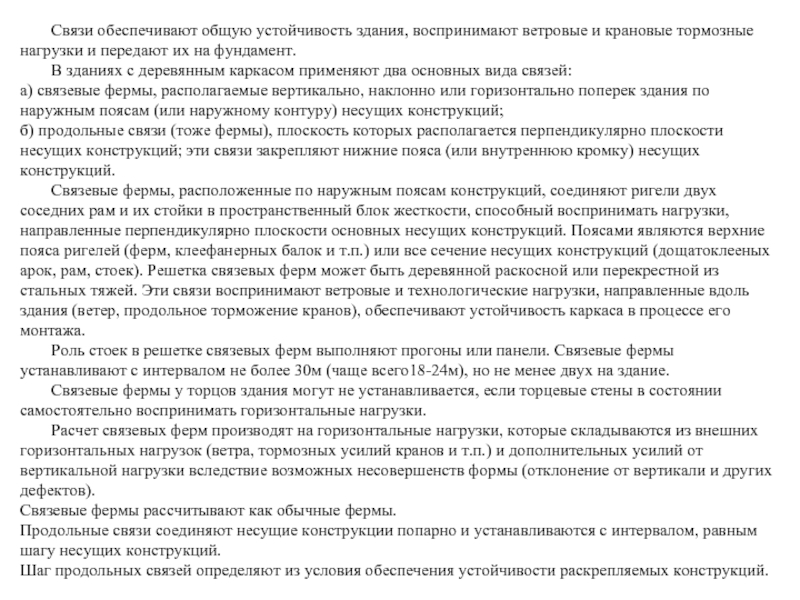 Слайд 2Связи обеспечивают общую устойчивость здания, воспринимают ветровые и крановые тормозные нагрузки