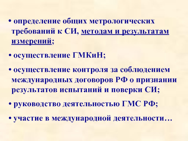 Слайд 8 определение общих метрологических требований к СИ, методам и результатам измерений;