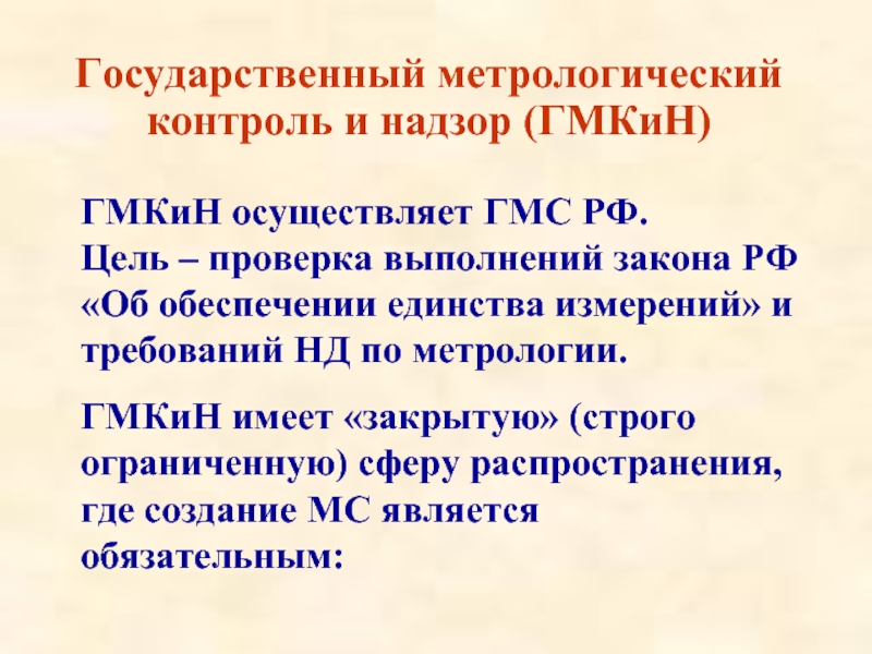 Слайд 13Государственный метрологический контроль и надзор (ГМКиН)