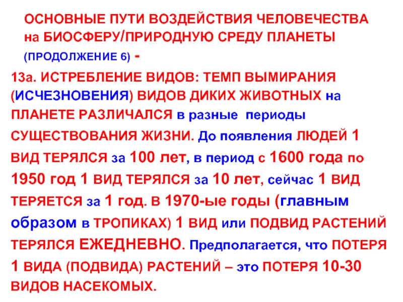 ПУТИ НЕГАТИВНОГО ВОЗДЕЙСТВИЯ ЛЮДЕЙ (РАЗВИВАЮЩЕГОСЯ ЧЕЛОВЕЧЕСТВА) на БИОСФЕРУ.