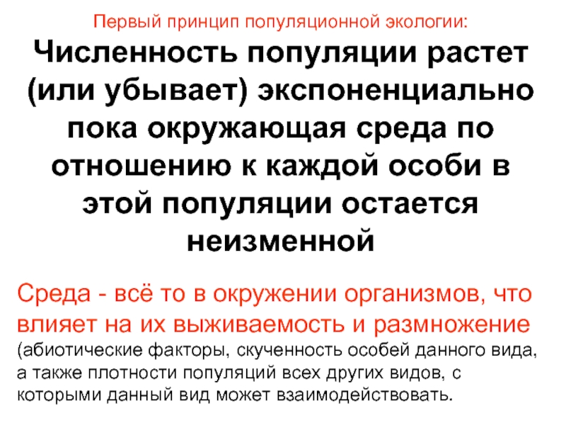 Принципы популяционной динамики (П.В.Турчин). Первый принцип – «закон экспоненциального