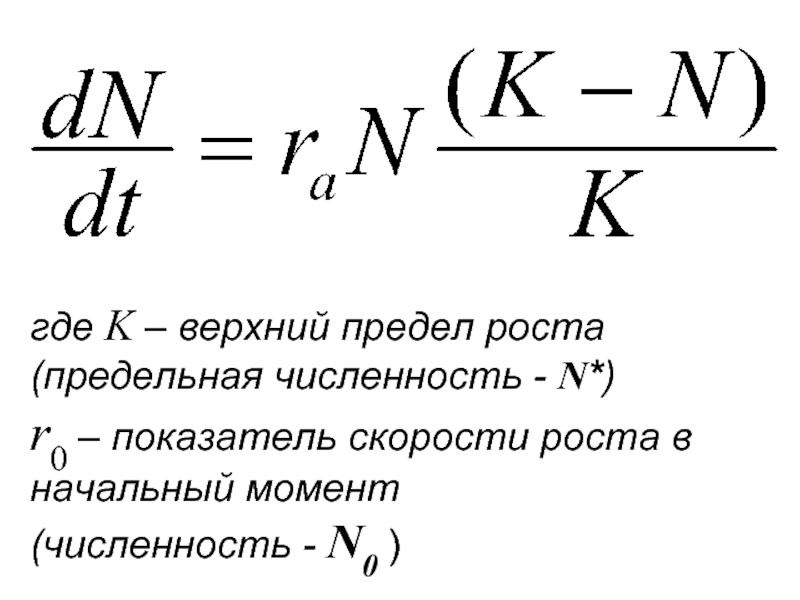 Слайд 33где K – верхний предел роста (предельная численность - N*)