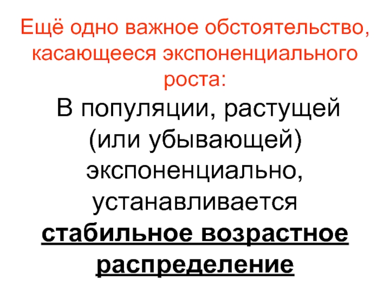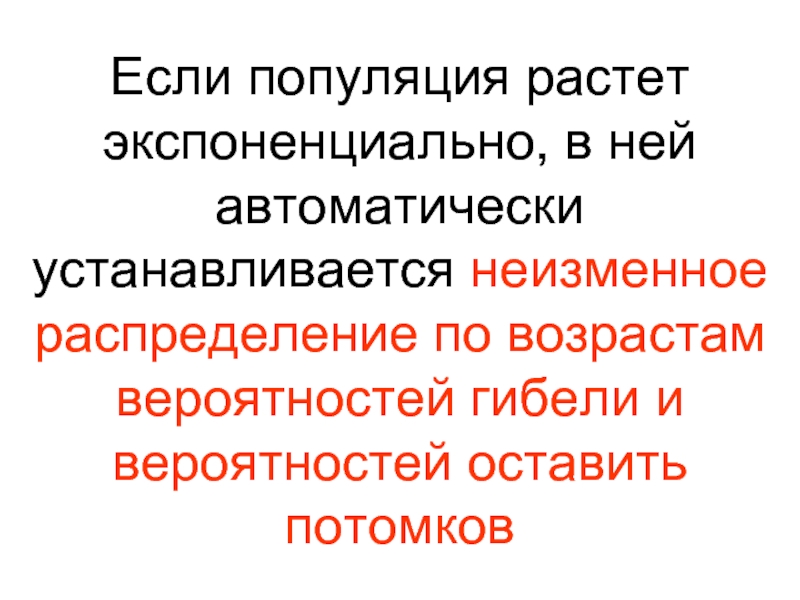 Слайд 20Если популяция растет экспоненциально, в ней автоматически устанавливается неизменное распределение по