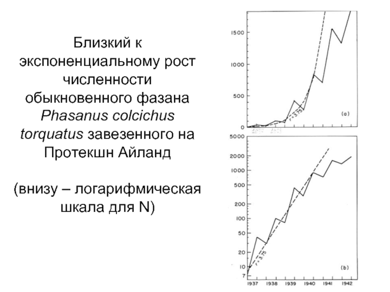 Слайд 13Близкий к экспоненциальному рост численности обыкновенного фазана