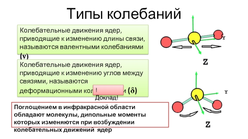Колебательные движения ядер, приводящие к изменению длины связи, называются валентными колебаниями (ν)