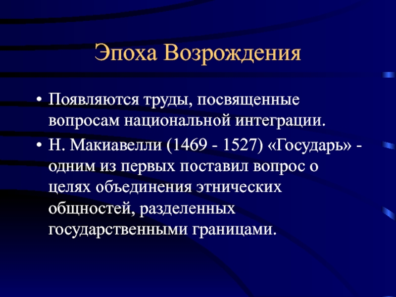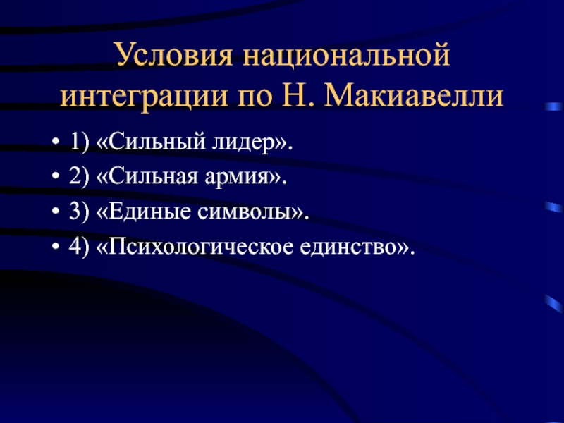 Слайд 9Условия национальной интеграции по Н. Макиавелли