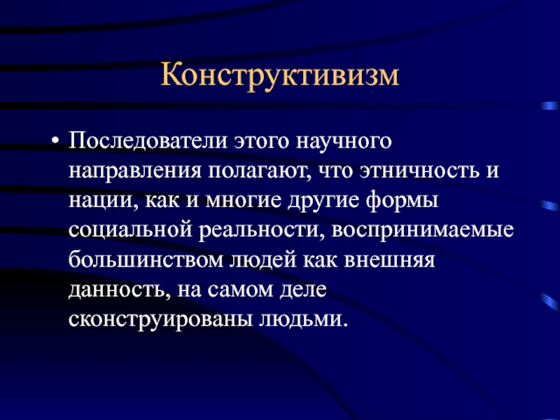 Последователи этого научного направления полагают, что этничность и нации, как и