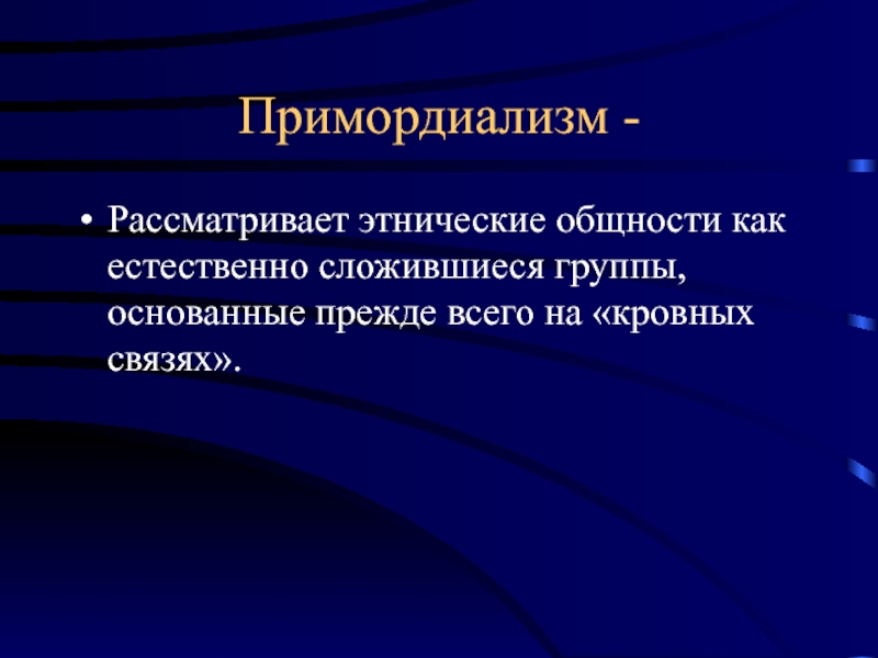 как примордиализм, абсолютизирующего фактор кровно-родственных связей в механизме сохранения этничности.