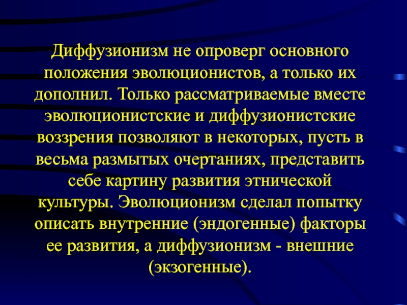 Слайд 18Диффузионизм не опроверг основного положения эволюционистов, а только их дополнил. Только