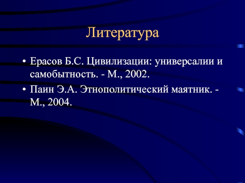Ерасов Б.С. Цивилизации: универсалии и самобытность. - М., 2002.