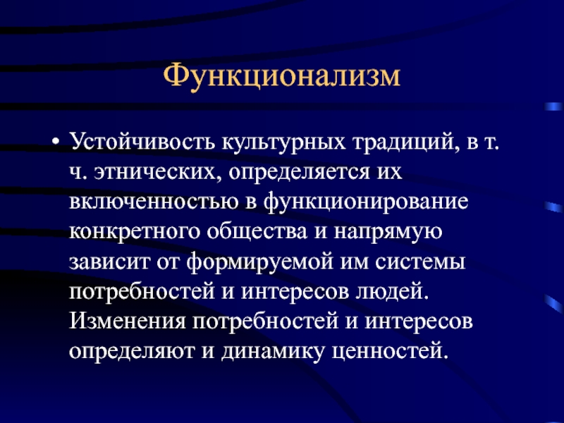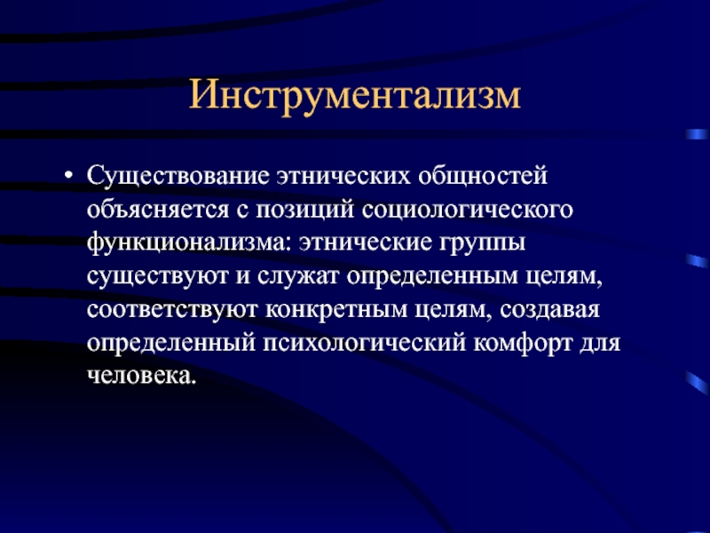 Существование этнических общностей объясняется с позиций социологического функционализма: этнические группы существуют