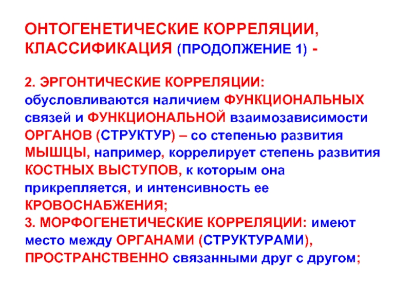Слайд 8ОНТОГЕНЕТИЧЕСКИЕ КОРРЕЛЯЦИИ, КЛАССИФИКАЦИЯ (ПРОДОЛЖЕНИЕ 1) -