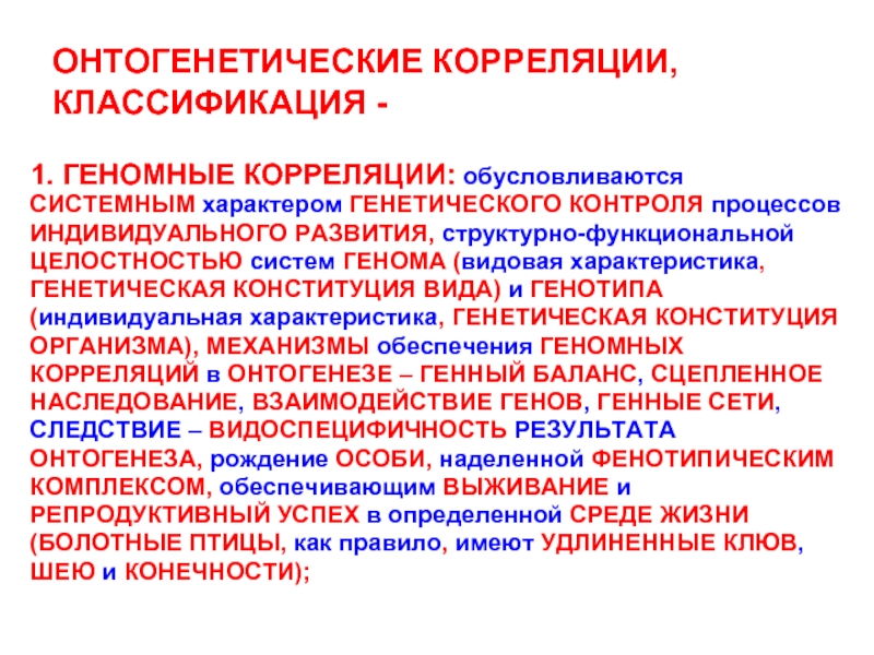 Слайд 7ОНТОГЕНЕТИЧЕСКИЕ КОРРЕЛЯЦИИ, КЛАССИФИКАЦИЯ -