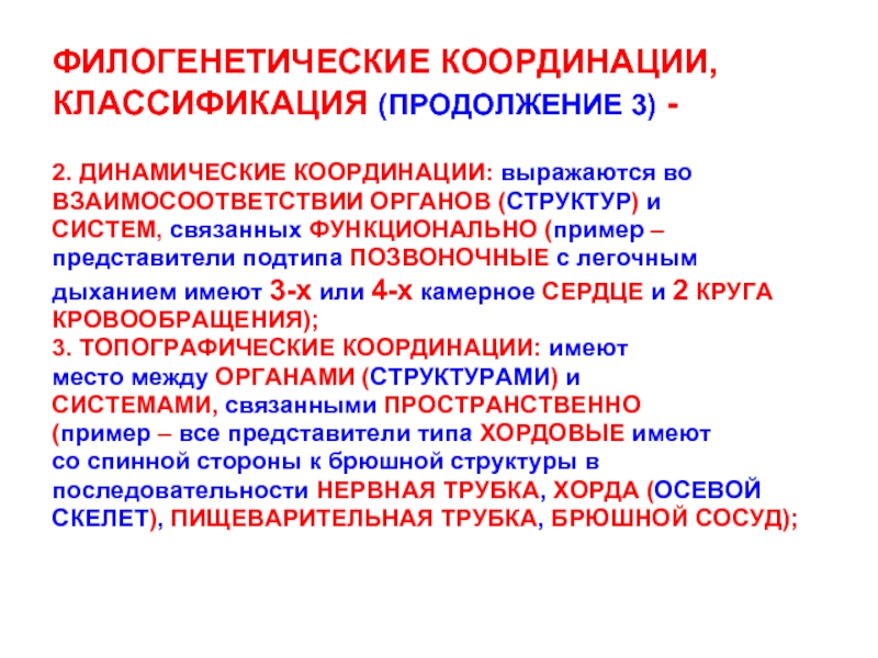Слайд 6ФИЛОГЕНЕТИЧЕСКИЕ КООРДИНАЦИИ, КЛАССИФИКАЦИЯ (ПРОДОЛЖЕНИЕ 3) -