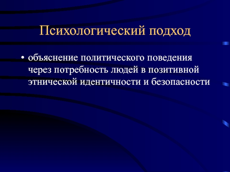 влияние этнических факторов на политический процесс. Используются подходы: а) культурологический; б) коллективистский; в) психологический