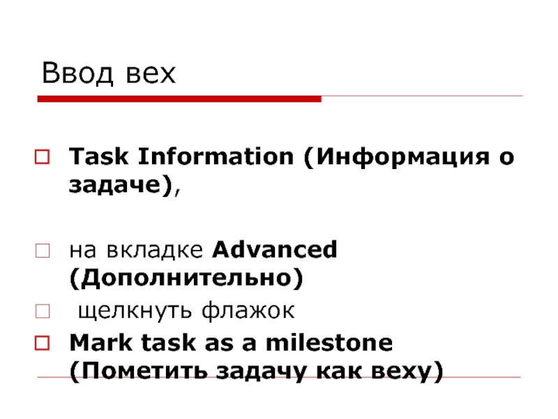 Войти в диалоговое окно "Информация о задаче" (Task Information)