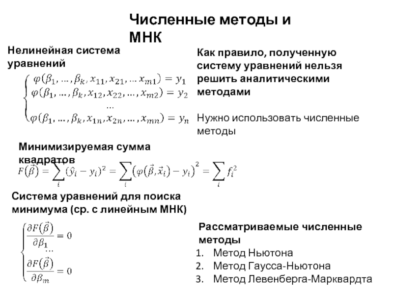 Система уравнений для поиска минимума (ср. с линейным МНК)