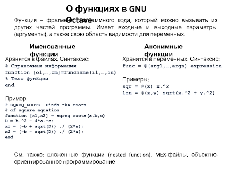См. также: вложенные функции (nested function), MEX-файлы, объектно-ориентированное программирование