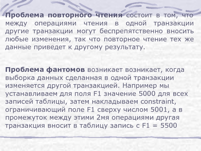 Слайд 4Проблема повторного чтения состоит в том, что между операциями чтения в